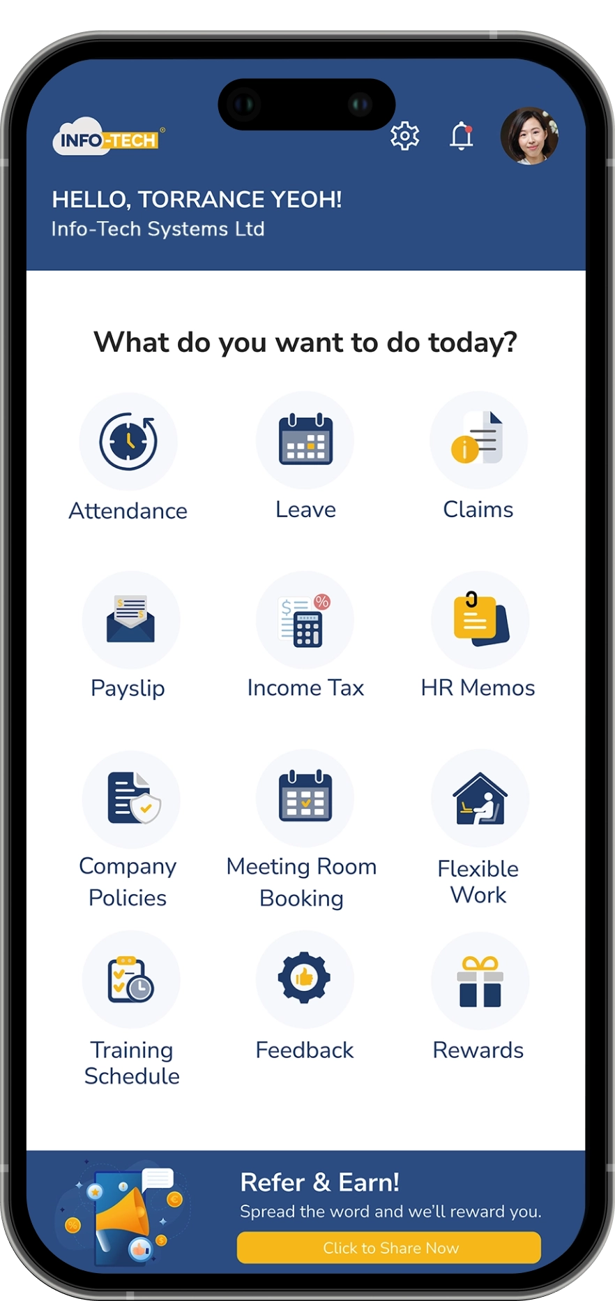 An all-in-one solution, a complete 360° HR software to help you manage HR matters in the office or on-the-go.