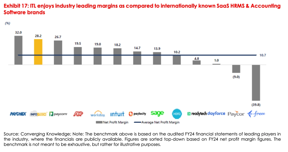 Exhibit 17: ITL enjoys industry leading margins as compared to internationally known SaaS HRMS & Accounting Software brands