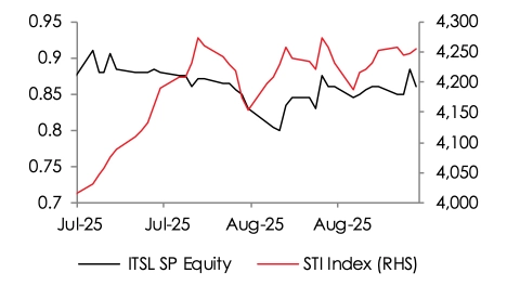 To value the company, we apply a target P/E multiple of 16x to our forecasted FY26 EPS of 6.4 Singapore cents. Our target P/E multiple is derived from applying a 20% discount to the average P/E of ITL’s peers (see Exhibit 21), taking into account ITL’s focus on Asia/Emerging Markets (EM) and its relatively smaller market capitalisation versus some of its peers, notwithstanding its superior profitability. As such, we initiate coverage on ITL with a BUY rating and a FV estimate of SGD1.00.